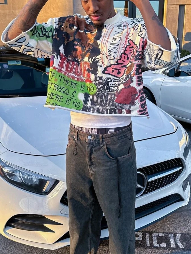 New Y2k Hip Hop Trendy Graffiti Pattern Printed T Shirt Men Women Retro Harajuku Gothic Oversized Short Sleeved Streetwear Tops